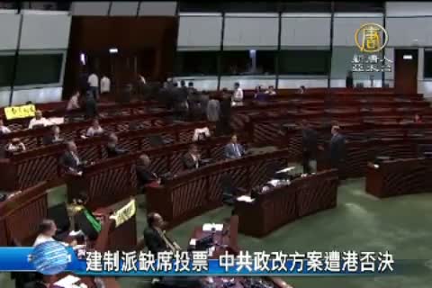 【新唐人亞太台 2015 年 06 月 18 日訊】香港2017行政院長官產生辦法決議案,經過二天的審議,今天中午進行記名表決,在部分建制派退場的情況下,28票反對,8票贊成,1人未投票,中共人大框架下的政改方案,遭到否決。