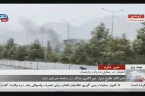 【新唐人亞太台 2015 年 06 月 22 日訊】阿富汗首都喀布爾的國會大樓外傳出爆炸聲響,接著還有槍聲,陣陣濃煙中議員紛紛逃出尋找避難處。據外電報導,當時國會內正介紹新提名國防部長人選,多名武裝份子闖入開槍,目前傷亡情況不明。法新社報導,攻擊行動是激進組織神學士所為,引爆4枚炸彈,槍戰還在進行中。