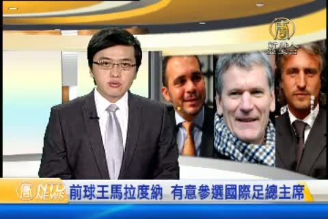 【新唐人亞太台 2015 年 06 月 23 日訊】國際足總主席布拉特第5度連任後因不堪背負足總貪腐醜聞而請辭,國際足總將於今年12月選出繼任主席人選。前阿根廷球王馬拉度納公開表示有意角逐。馬拉杜納也表示,希望由自己領導國際足總走出醜聞,他還得到委內瑞拉總統馬杜羅的公開支持。目前約旦王子阿里、國際足總副主席吉爾和法國前球星 大衛真路拿都已經確定參選。
