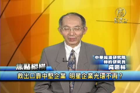 【新唐人亞太台 2015 年 06 月 26 日訊】台灣出口下降,成為熱議話題,企業界要求台幣加大貶值,不過,央行總裁彭淮南昨天是直接拒絕,而前國發會主委管中閔提出,政府不該再出資扶植新一代明星產業,救出口的只有靠中堅企業?怎麼看這樣的說法,今天焦點縱橫,繼續帶您了解。