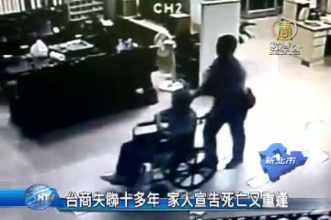 【新唐人亞太台 2015 年 06 月 27 日訊】新北市一名吳姓男子,10多年前到中國做生意,卻經商失敗還中風住院,自覺沒面子,不願向家人求援,就在中國街頭當遊民,妻兒找不到人,還向法院辦理死亡宣告,沒想到2015年6月11日,他被中國公安遣返回台,經過4000多個日子,終於一家團圓。