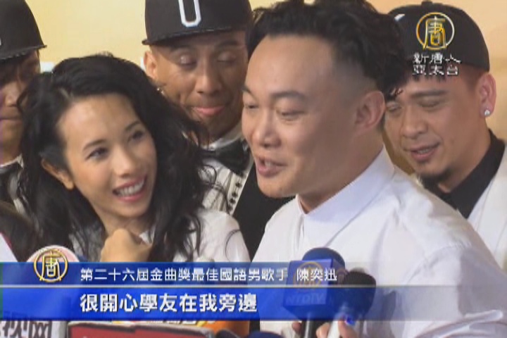 【新唐人亞太台 2015 年 06 月 28 日訊】金曲獎得獎名單出爐,由陳奕迅、張惠妹抱回歌王歌后寶座,陳奕迅得獎時,第一個擁抱的就是一旁的學友哥,陳奕迅出席慶功宴時說,當下得獎時,學友哥緊握住他的手,跟他說恭喜。