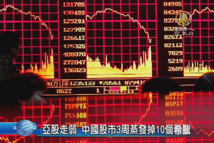 亞股走弱 中國股市3周蒸發掉10個希臘