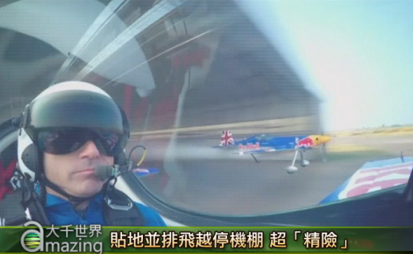 只見兩架飛機在空中飛行數圈後,以高速並肩衝入機棚。此時飛機離地面只有一公尺,短短幾秒鐘,兩架飛機成功衝出機棚,再次奔向天空,為飛行史寫下新的一頁。