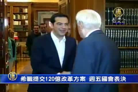 【新唐人亞太台 2015 年 07 月 10 日訊】爭取紓困計畫最後努力,希臘總理齊普拉斯趕在週四 期限截止前,提交一份為期2年、規模為120億歐元的改革方案,希望能在周日的峰會上和債權人達成協議,獲得紓困貸款。