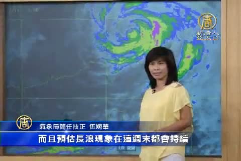 【新唐人亞太台 2015 年 07 月 11 日訊】新聞頭條,先來看到,氣象局已經在今天(11)早上11點半,解除昌鴻颱風海上颱風警報。而颱風雖然逐漸遠離台灣,但海面風浪未減,民眾還是要避免從事海上活動,另外中南部地區,這兩天也要留意大雨。