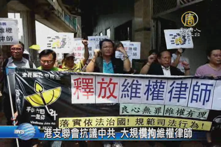 港支聯會抗議中共 大規模拘維權律師