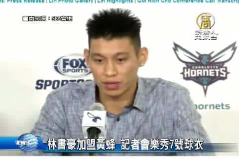 【新唐人亞太台 2015 年 07 月 14 日訊】台裔NBA球員林書豪,加盟新東家黃蜂,今天凌晨,黃蜂幫林書豪舉行記者會,線上同步直播,林書豪手持七號球衣出席,他說非常興奮可以加盟黃蜂,會盡情展現自己的進攻能力,幫助黃蜂重返季後賽。二十六歲的林書豪,效力過紐約尼克、休士頓火箭隊,和洛杉磯湖人隊,外媒看好,林書豪加入後,能提升黃蜂整體實力。