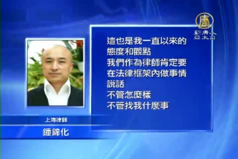 上海律師 鍾錦化:「淩晨的時候被他們上門,在那裡騷擾,後來我一直沒開門他們就走了,他肯定還會過來找我們的,等一下我會繼續和他們聯繫,問問他們到底是怎麼回事。」