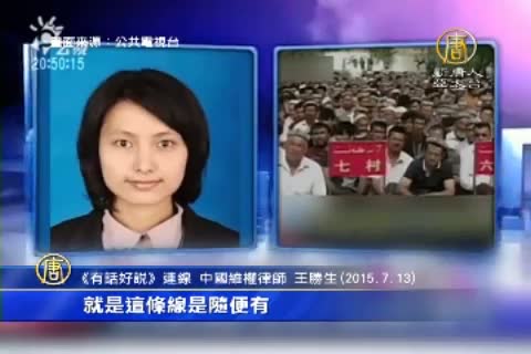 2015-07-29 18:34:07被稱為中國良心的維權律師,卻在七月,遭遇了前所未有的劫難,中共當局有預謀的,跨省市連夜抓捕維權律師或人權捍衛者,短短一個禮拜,就有超過兩百人受牽連,20多人至今仍下落不明,遭到秘密拘押。中共打壓維權律師,不僅飽受國際社會譴責,更讓人疑惑,如果中國,連在體制內替人民爭取權益的維權律師都容不下,所謂「依法治國」的明天,到底在哪裡?