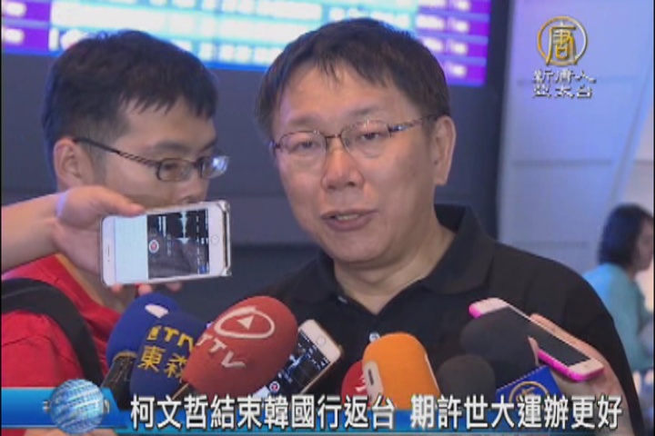 【新唐人亞太台 2015 年 07 月 16 日訊】台北市長柯文哲前往南韓光州世大運接旗於傍晚返國,柯文哲表示,這次收穫很大,也有信心,台北世大運一定會辦得比光州好。