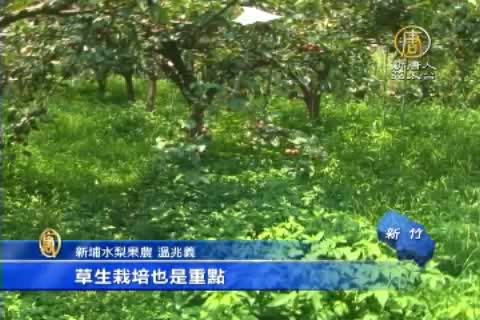 新埔水梨果農 溫兆義:「它(雜草)可以幫我們儲存水分,還有就是它的根系,會對泥土那個孔隙會比較大,所以,它的草是好的,當我們需要肥料的時候再把它除掉,這就是我們留草的原因。」