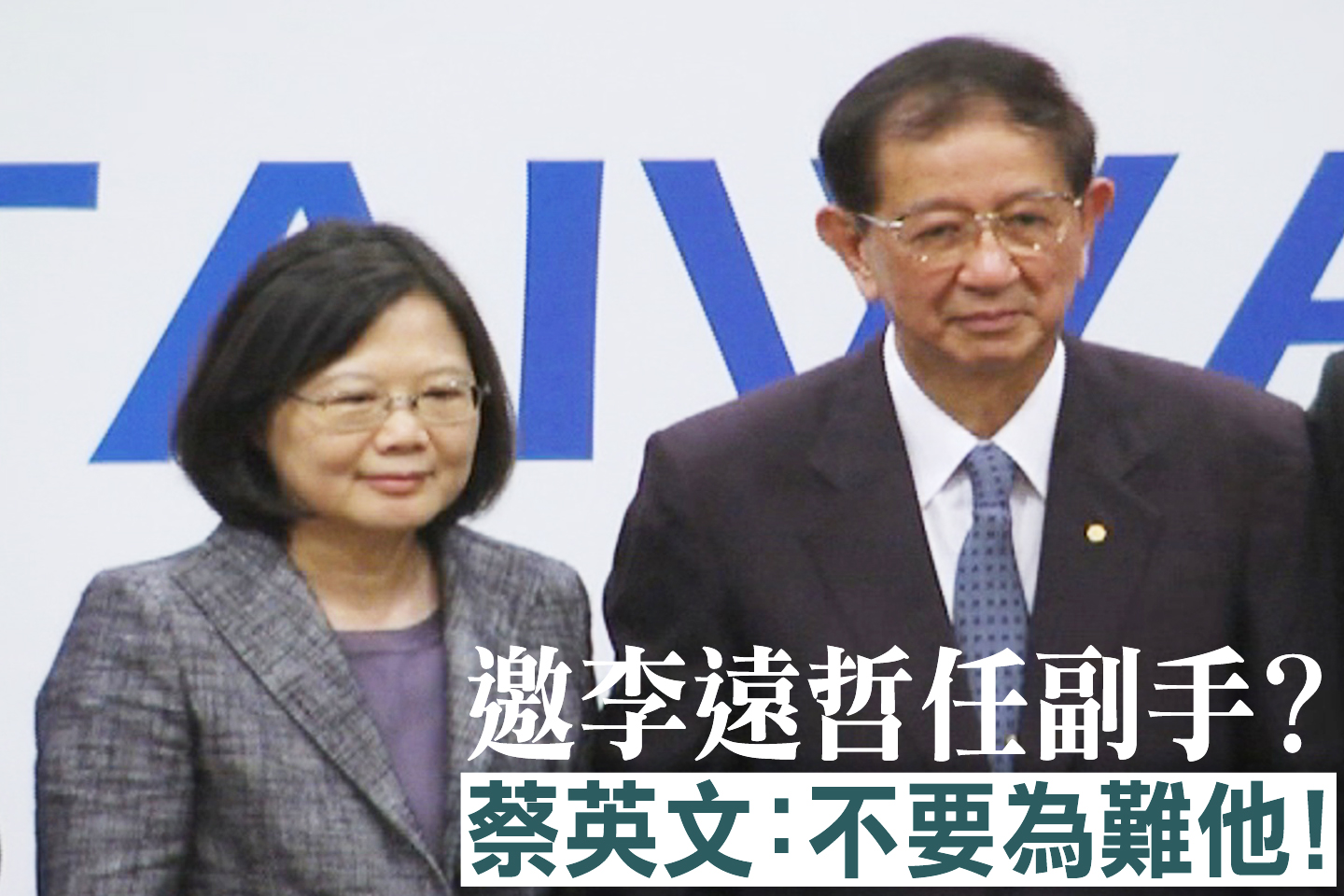【新唐人亞太台 2015 年 07 月 17 日訊】2016總統大選藍綠副手人選未定,民進黨主席蔡英文今天(17日)與前中研院院長李遠哲出席活動,媒體詢問是否延攬李遠哲院長任副手,蔡英文說不要為難他。