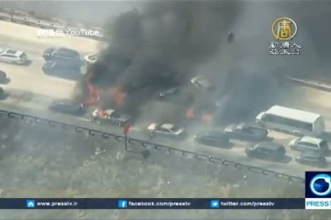 【新唐人亞太台 2015 年 07 月 18 日訊】歡迎回到新聞現場。帶您關心國際重要訊息。美國加州森林大火蔓延,野火被強風吹到正在高速公路上的行駛的20多輛汽車,公路頓時成為一片駭人的火海,車內駕駛與乘客下車四處逃竄、險象環生。美國林務局表示,火勢在幾小時內就吞噬了約1,416公頃的林地。