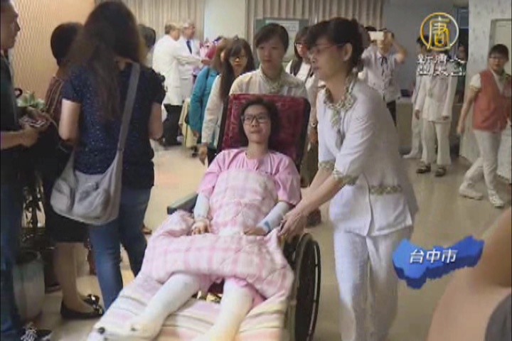 【新唐人亞太台 2015 年 07 月 20 日訊】八仙塵爆中,全身37%遭燒燙傷的傷患陳奕如,從臺北的醫院轉送臺中,恢復情況良好,傷口剩下8%,不需要植皮,今天她與爸爸媽媽陪同出席記者會,感謝醫護人員的辛勞,也鼓勵其他傷患家屬們。