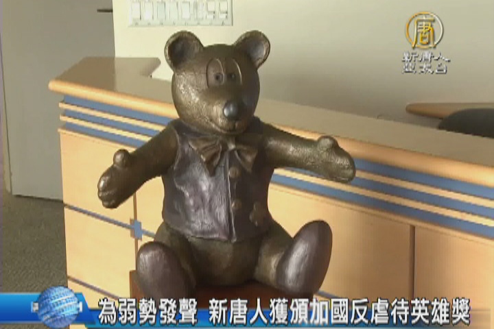 【新唐人亞太台 2015 年 07 月 21 日訊】新唐人長期關注中國人權問題,加拿大反虐待中心日前向新唐人加拿大電視台頒發反虐待英雄獎,褒揚在關懷弱勢群體方面 所做出的傑出貢獻。新唐人也是第一個獲得英雄獎的電視台。