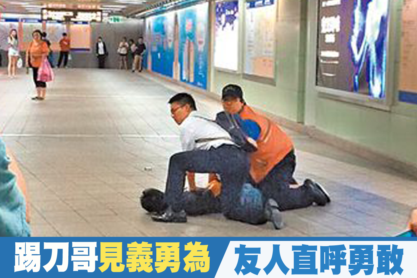 【新唐人亞太台 2015 年 07 月 21 日訊】中山捷運隨機殺人案,第一時間嫌犯被保全與路人壓制,讓傷害降到最低。而協助壓制犯人的民眾,當時用腳把犯人的兇刀踢開,被稱為「踢刀哥」,而他本人則是非常低調,友人得知他見義勇為,都非常佩服。