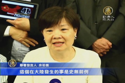 連署發言人余若薇:「這個在大陸發生的事是史無前例,不但對法律界,對全世界都有非常深遠的影響,因此法治和公義是牽涉社會穩定,是非常重要的基石,所以我們呼籲全球都聯署。」