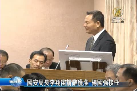 【新唐人亞太台 2015 年 07 月 21 日訊】國安會晚間發佈消息,指出國安局長李翔宙因為健康因素,向馬總統請辭獲准,將改聘為國策顧問,遺缺由備役中將楊國強接任。國安會表示楊國強曾任陸軍官校校長、國安局駐美特派員、國安局副局長,資歷豐富,認為楊國強可勝任新職。