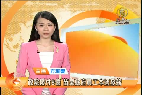 【新唐人亞太台 2015 年 07 月 22 日訊】苗栗縣7月的薪資及退休人員退休俸資金缺口8億元,確定本週可以發放了。苗栗縣長徐耀昌今天宣布,中央同意縣府所提出的節流措施,並預付下半年度 一般性補助款 8億元,解燃眉之急。12億元的員工薪水及退休人員退撫金,本周就會入帳。