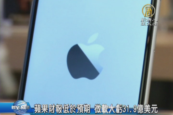 【新唐人亞太台 2015 年 07 月 22 日訊】美國超級財報,科技股成為重災區,蘋果公司第三季財報不如市場預期,股價在盤後一度暴跌8.8%,市值蒸發500億美元,外界質疑手機需求可能已經到頂。而另一家科技巨擘微軟,第三季則是淨虧損達31.9億美元,創下微軟上市,最大的單季虧損。
