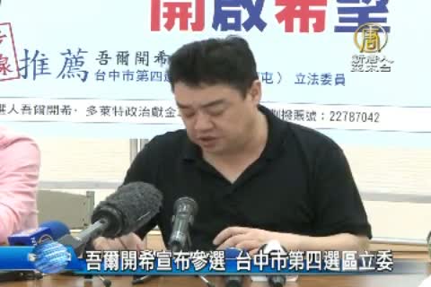 【新唐人亞太台 2015 年 07 月 24 日訊】中國六四民運人士吾爾開希今天宣布,正式投入2016立法委員選舉。已經在1997年取得台灣身分證的吾爾開希,雖然去年11月曾表示,將參加台中立委補選,不過事後又發表退選聲明,並表示將投入2016的立法委員選舉。今天他正式宣布,將代表進步連線,參選台中市第四選區立法委員,他說,兩岸,一定是他的參選重點。