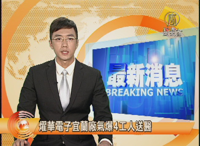 【新唐人亞太台 2015 年 07 月 28 日訊】稍早傳來的消息,宜蘭利澤工業區,燿華電子工廠,今天上午傳出疑似氯氣爆炸,4名工人受傷送醫,宜蘭縣政府勞工處,已經介入調查,稍後有進一步消息,我們再為您跟進。