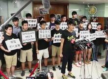 另外,約50名港大及其他大學的學生在會議室外抗議,表明校委會如未能回應訴求,會將行動升級。