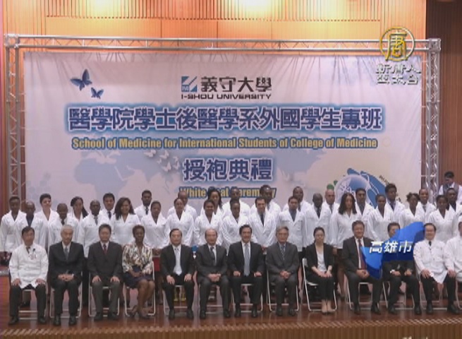 【新唐人亞太台 2015 年 07 月 29 日訊】義守大學第一屆學士後醫學系外國學生專班,日前舉行授袍典禮,來自12個國家32位同學從醫界前輩手中接過白袍,宣讀醫師誓詞。馬英九總統及多個使節團代表等貴賓都出席觀禮。
