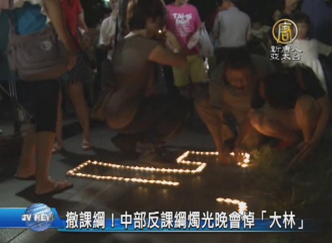 【新唐人亞太台 2015 年 07 月 31 日訊】在台北,教育部前的學生徹夜行動,而在台中的市民廣場,今天晚上,島國前進、台中蘋果樹公社等社團,也舉辦一場中部反洗腦教育燭光晚會,他們悼念學運夥伴「大林」, 林冠華,也將堅持他們的理念,自己的課綱,自己救。