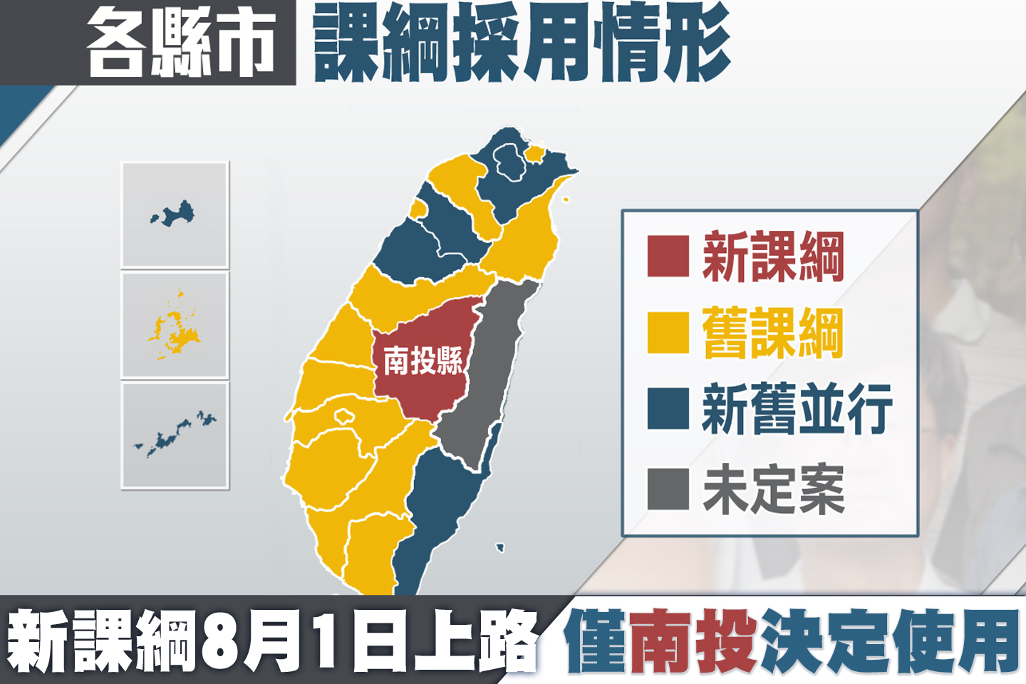 【新唐人亞太台 2015 年 08 月 01 日訊】反課綱抗議行動,持續延燒,但新課綱在今天,如期實施,要用哪個版本,各縣市作法不一,民進黨執政的12個縣市,採用舊課綱,雙北和高雄等8縣市,則是新舊課綱並行,只有藍營執政的南投,決定使用,新課綱。