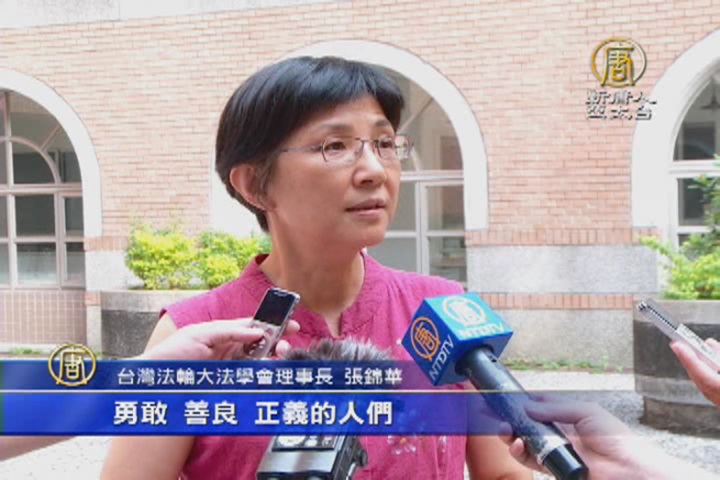 台灣法輪大法學會理事長 張錦華:「十萬台灣的人民,包括觀光客一起站出來舉報,江澤民這樣的罪行。其實我們是為這樣多的勇敢、善良、正義的人民,感到欣慰。」