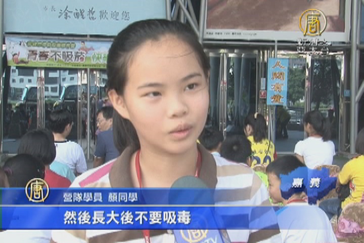 【新唐人亞太台 2015 年 08 月 03 日訊】關心校園霸凌、毒品入侵校園的問題,為了教導青少年正確反毒知識,嘉義市衛生局舉辦拒菸反毒夏令營,市長涂醒哲也到場跟學員一起跳舞反菸毒。