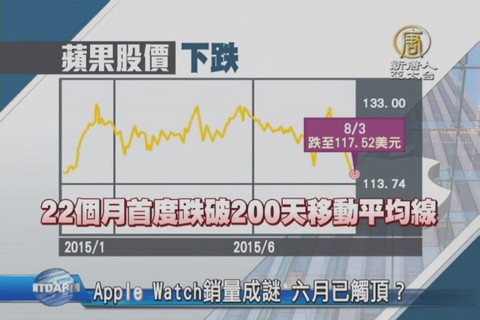 【新唐人亞太台 2015 年 08 月 04 日訊】Apple Watch自從今年四月開賣以來,銷量一路下滑。一般認為,Apple Watch的電池續航力不足,加上功能也太陽春。不過蘋果卻一直都沒公佈Apple Watch的真實銷量,有分析認為,Apple Watch的銷量,在6月已經觸頂。