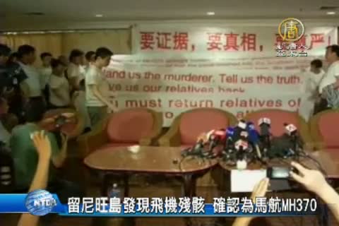 【新唐人亞太台 2015 年 08 月 06 日訊】馬來西亞首相納吉在台北時間今天凌晨宣布,上個月29號在印度洋法屬留尼旺島上發現的飛機殘骸,經過鑒定,確認屬於馬航MH370客機。納吉表示,確認殘骸 意味著 MH370在南印度洋墜毀已成事實,接下來將調查失事原因。不過乘客家屬則認為,應該要繼續搜尋飛機主體和黑盒子 才能下定論,對於親友生還仍抱一絲希望。去年3月8號,馬航MH370從吉隆坡飛往北京,機上搭載239名乘客,其中包括153名中國籍乘客。起飛後不久,就在吉隆坡與越南胡志明市航空管制區交界失蹤,成為航空史上最大謎團之一。