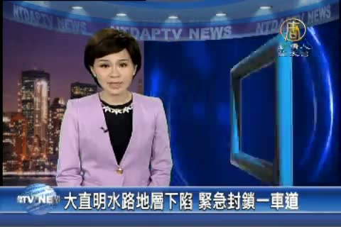 【新唐人亞太台 2015 年 08 月 09 日訊】為您插播最新消息,台北市 大直 明水路今天晚間驚傳地層下陷,警方 目前已經緊急封鎖現場一個車道,至於地層下陷的原因是否與颱風蘇迪勒有關聯,還需要後續釐清。這是剛剛收到的最新消息,也提醒用路人要特別留意。