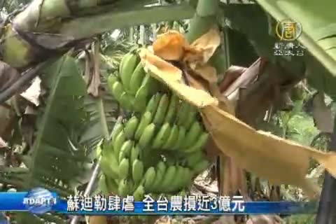 【新唐人亞太台 2015 年 08 月 09 日訊】蘇迪勒颱風帶來強風,今天遠離台灣後,各地都展開善後工作。 農委會統計,目前全台農業損失金額,將近台幣3億元。