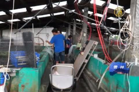 【新唐人亞太台 2015 年 08 月 09 日訊】蘇迪勒颱風肆虐,雲林一家錦鯉場,屋頂上被狂風掀翻,管線跟著被扯斷,兩萬多隻錦鯉因此而缺氧死亡。損失近3千萬元。