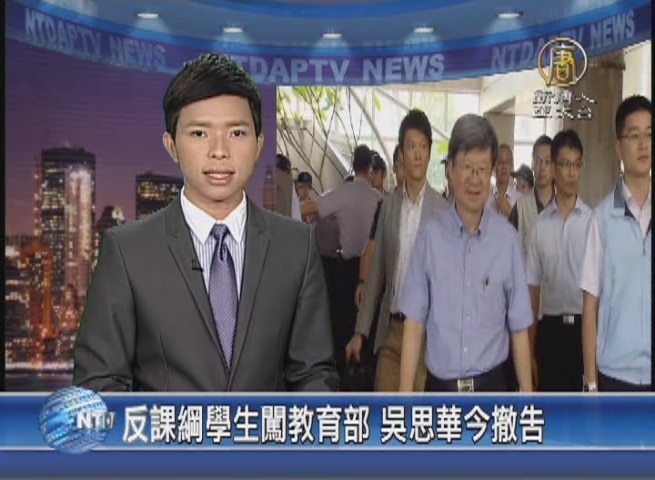 【新唐人亞太台 2015 年 08 月 10 日訊】反課綱學生及民眾7月23日深夜闖入教育部,教育部秘書處當時報案並提出告訴,教育部長吳思華這個月5日在台中與學生座談後表示,將撤回對學生的提告。北檢證實,教育部今天(10日)下午派人前往台北地檢署開庭,當庭撤回對所有學生、民眾及記者的告訴,因此,就之前教育部提告屬於告訴乃論之罪的毀損、侵入住宅罪,檢察官將會做出不起訴處分。