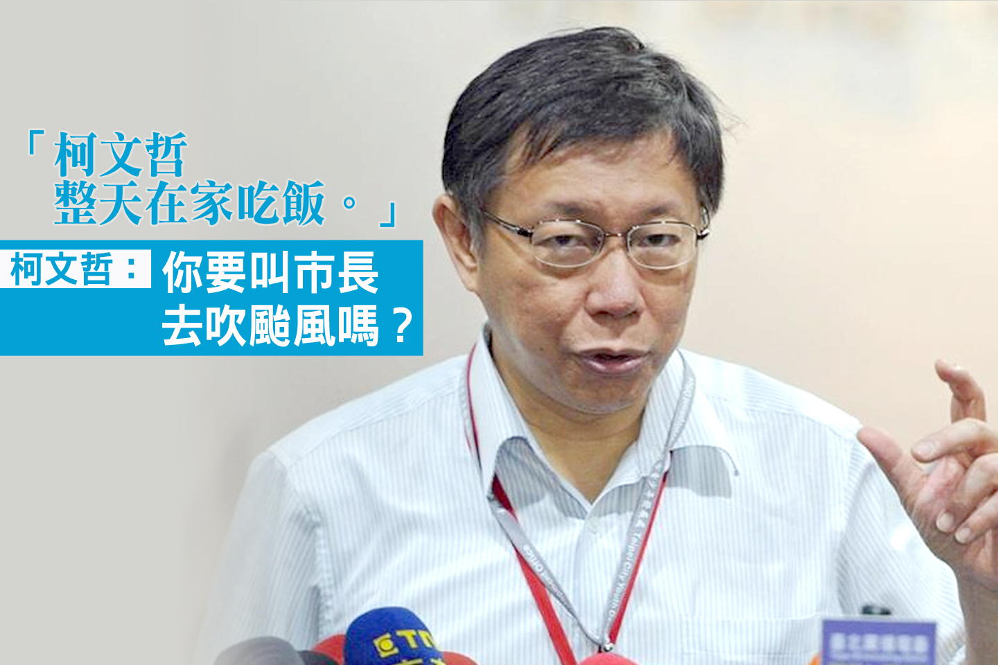 台北市長 柯文哲:「颱風很大的時候你要叫市長去吹颱風嗎,也不用嘛,所以這想不通到底再想什麼。」
