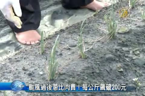 【新唐人亞太台 2015 年 08 月 11 日訊】颱風過後農損災情嚴重,像是雲林青蔥的產地價格從每公斤的7、80元,漲到現在每公斤要200元,而北部的三星蔥的市場拍賣均價,從颱風前的123元漲到177元,但量只剩6.5公噸,幾乎快要沒蔥可用,在中南部,一大把蔥都要破200元,不少自助餐店業者咬牙買蔥,大嘆比肉還要貴。