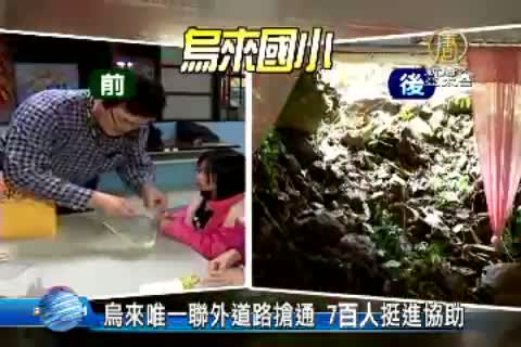 【新唐人亞太台 2015 年 08 月 12 日訊】「蘇迪勒」重創新北市烏來地區,讓觀光老街形同廢墟,連郵局的金庫,也被埋在土石堆裡,而唯一的聯外道路新烏路,雖然緊急搶通,但路況相當糟糕,國軍和市府環保人員,共出動700多人,協助民眾整理家園。