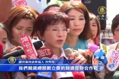 【新唐人亞太台 2015 年 08 月 13 日訊】民進黨總統參選人蔡英文昨天公佈,競選總部主委將由高雄市長陳菊擔任。國民黨總統參選人洪秀柱今天回應,說國民黨現在設了 總統跟立委 二合一的競選總部,她的主委,就是國民黨主席朱立倫,今天洪秀柱也桃園跑行程,搶攻眷村票。