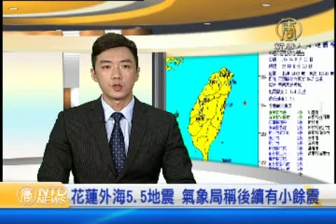 【新唐人亞太台 2015 年 08 月 14 日訊】鏡頭轉回台灣,昨晚全台觀眾都感受到地牛翻身,在晚間10點08分時,發生芮氏規模5.5的地震,最大震度在宜蘭3級;地震測報中心表示,這起地震屬於淺層地震,後續可能會有小餘震,但民眾不必過度擔心。