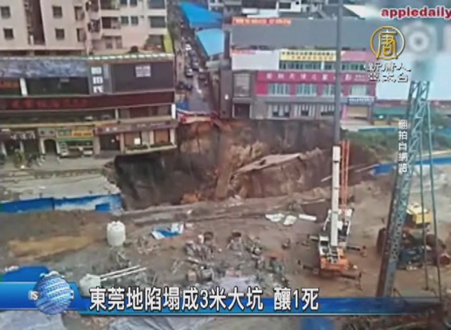 東莞地陷塌成3米大坑 釀1死
