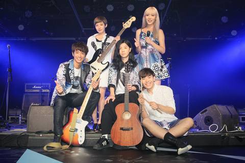 「輕晨電」團員合照 鼓手大開 鍵盤+合成器小英、團長兼吉他手劉以豪、Bass手孟書、主唱隋玲