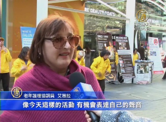 活動組織者 蘇珊:「SBS(澳洲民族電視臺)有個二十幾分鐘介紹這個活摘器官的(紀錄片),更多民眾他都不用來瞭解,他就直接來簽名的。