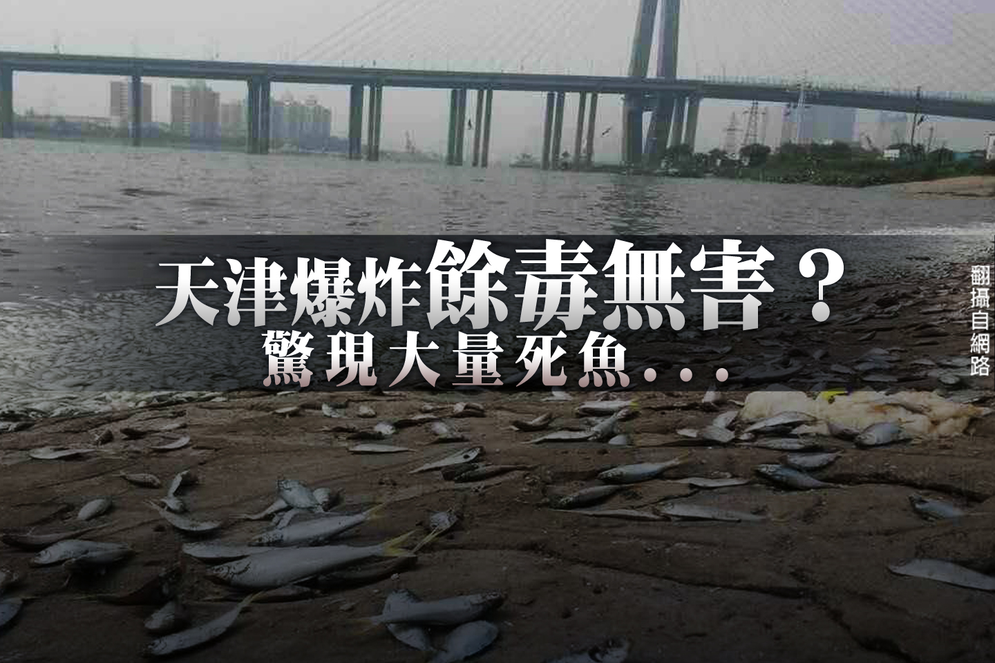 2015-08-25 13:07:33天津大爆炸後,海河大閘附近出現大量死魚,官方檢測認為死魚原因是缺氧,沒有檢出氰化物。不過,國際環保組織「綠色和平」檢測結果卻發現,水中含微量氰化物。天津市民相當恐慌,沒有人敢買魚,並且都改喝瓶裝水。