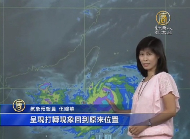 氣象預報員 伍婉華:「呈現打轉現象回到原來位置,目前仍然在 鵝鑾鼻南南東方大約320公里的海面上,預估未來開始移動以後,它會往偏北的方向移動,但是移動的速度也不快。那麼我們還是針對,包含綠島蘭嶼的東南部海面,巴士海峽發布海上颱風警報。」