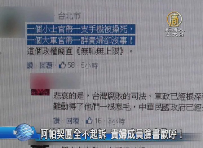阿帕契團全不起訴 貴婦成員臉書歡呼!